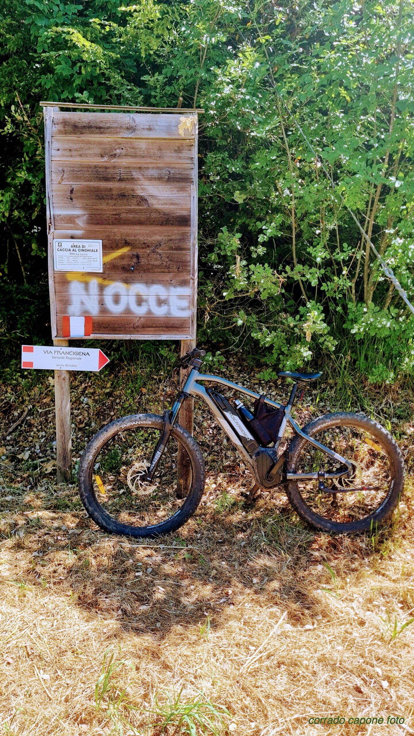 Ripreso l’asfalto, dopo circa 3 chilometri ho deviato per il sentiero del Monte Castellone, a 450 metri di altitudine. Il cartello indica la presenza dello scoiattolo nero, che ho avvistato in mezzo alla strada tempo fa in zona Santuario di Formicola. Per quanto ne so, questo animale non si lascia avvicinare facilmente dall’uomo.