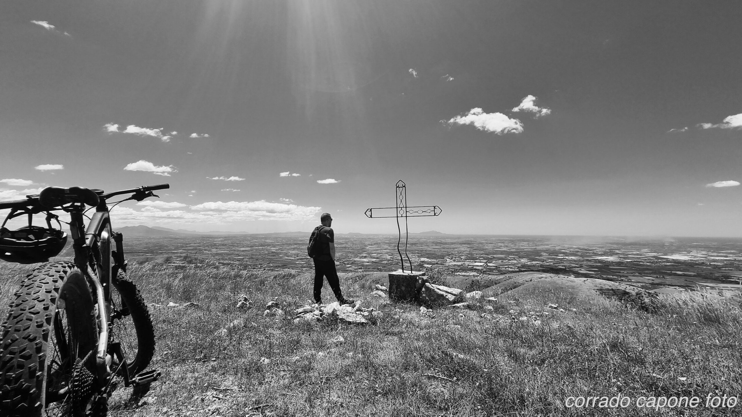 Giunto in vetta, parcheggio la bici. Dopo le foto di rito, ne approfitto per stendermi un po’ visto che la panchina è abbastanza grande. Da qui, la vista è semplicemente spettacolare: Riardo, Pietramelara e Roccaromana raccolte in un primo piano mozzafiato, incorniciati dalle vette circostanti dove ogni tanto si riesce a vedere il particolare volo di qualche falco. Un altro punto privilegiato per ammirare la bellezza del territorio.